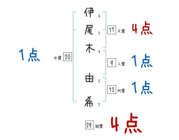 総運![]() | 伊尾木由希さんの総運は29画の4つ星!完全主義で才能がある。厳格な心の持ち主。 あなたの人生を表す1番重要な運勢です。生涯を通じて影響する総合運となり、主に50歳以降の晩年期に影響を及ぼします。 |
