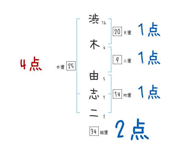 総運![]() | 渋木由志二さんの総運は34画の2つ星!独創性に優れるが、自尊心が強く災難に注意しましょう。 あなたの人生を表す1番重要な運勢です。生涯を通じて影響する総合運となり、主に50歳以降の晩年期に影響を及ぼします。 |