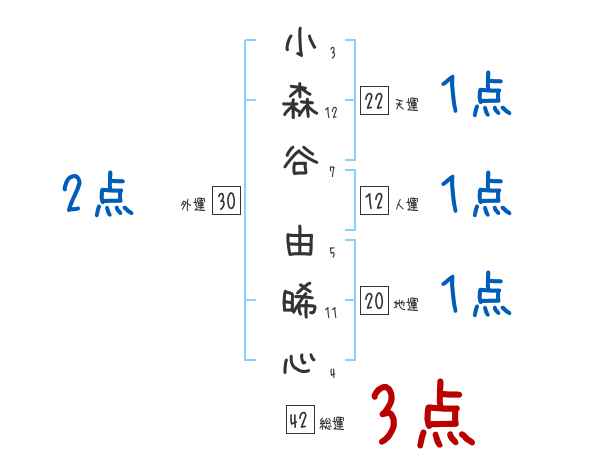 小森谷由晞心さんの画数の鑑定結果