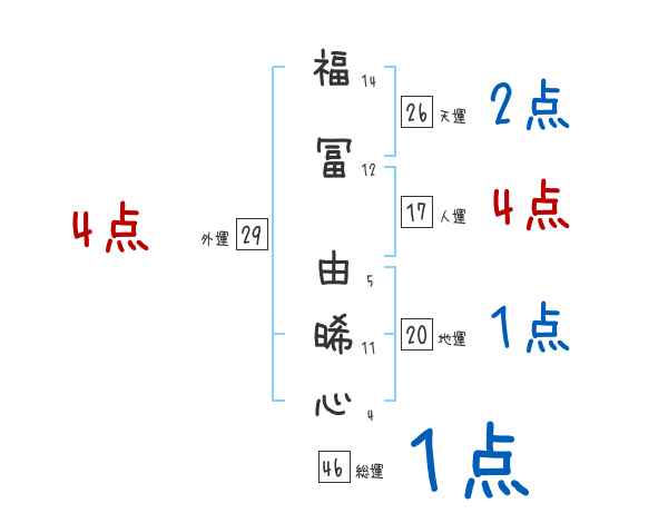 福冨由晞心さんの画数の鑑定結果