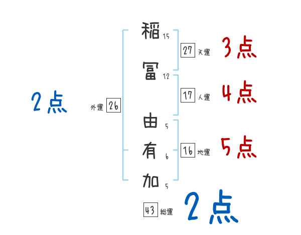 稲冨由有加さんの画数の鑑定結果