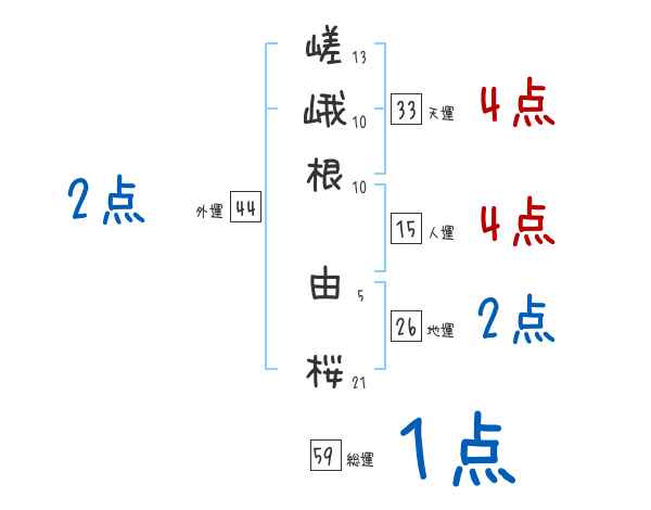 嵯峨根由桜さんの画数の鑑定結果