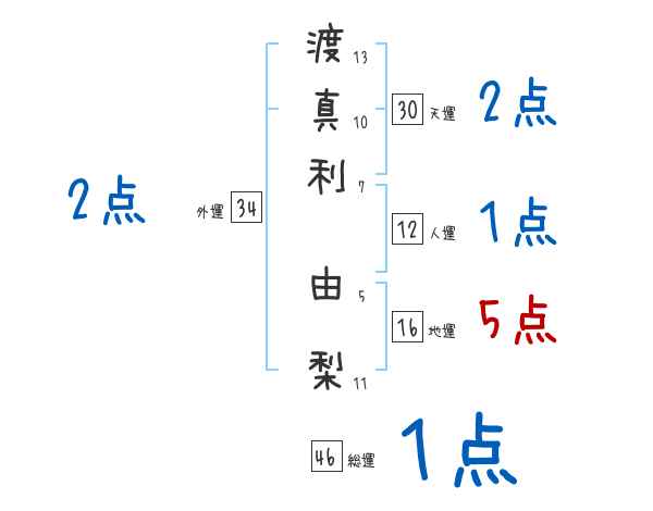 天運![]() | 渡真利由梨さんの天運は30画の2つ星!浮き沈みの激しさに注意しましょう。 家系が持つ宿命的な運勢を表します。祖先から受け継いだ苗字ですので自分の力が及びません。家柄を象徴します。 |