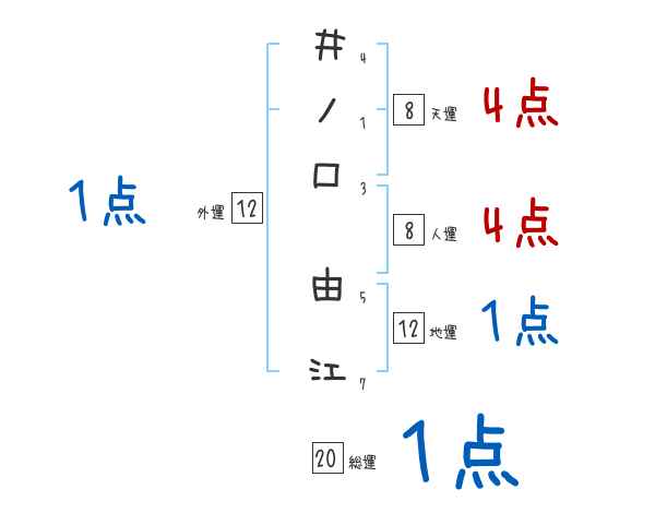 天運![]() | 井ノ口由江さんの天運は8画の4つ星!勤勉家。根気強く努力し成功する。忍耐力がある。 家系が持つ宿命的な運勢を表します。祖先から受け継いだ苗字ですので自分の力が及びません。家柄を象徴します。 |