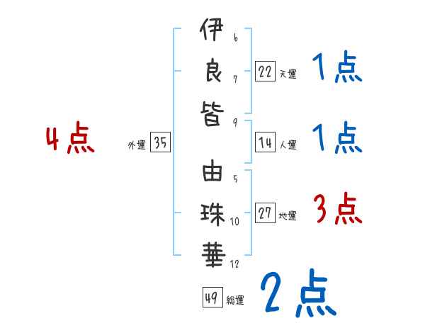 伊良皆由珠華さんの画数の鑑定結果