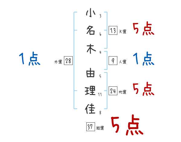 外運![]() | 小名木由理佳さんの外運は28画の1つ星!家庭環境に注意。スポーツで活躍できる能力があるかも。 生活面を象徴する運勢です。外部から受ける影響力を表し、結婚運、家庭運や職場、環境への順応性を表します。 |