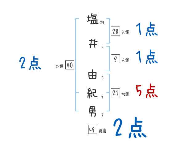 天運![]() | 塩井由紀男さんの天運は28画の1つ星!家庭環境に注意。スポーツで活躍できる能力があるかも。 家系が持つ宿命的な運勢を表します。祖先から受け継いだ苗字ですので自分の力が及びません。家柄を象徴します。 |