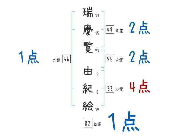 瑞慶覧由紀絵さんの画数の鑑定結果