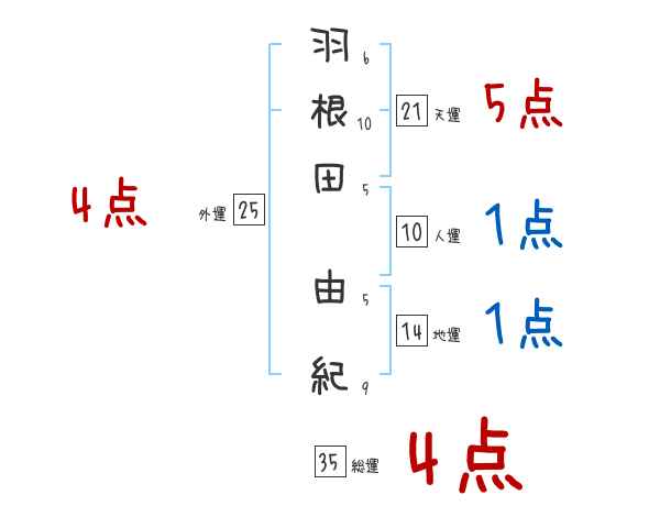 羽根田由紀さんの画数の鑑定結果