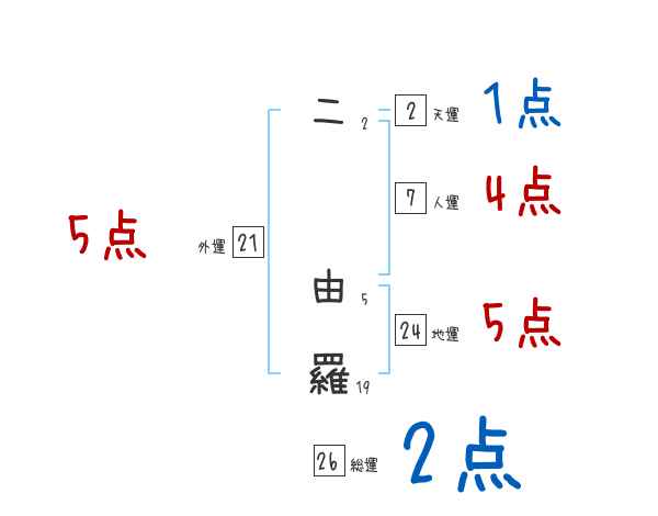 二由羅さんの画数の鑑定結果