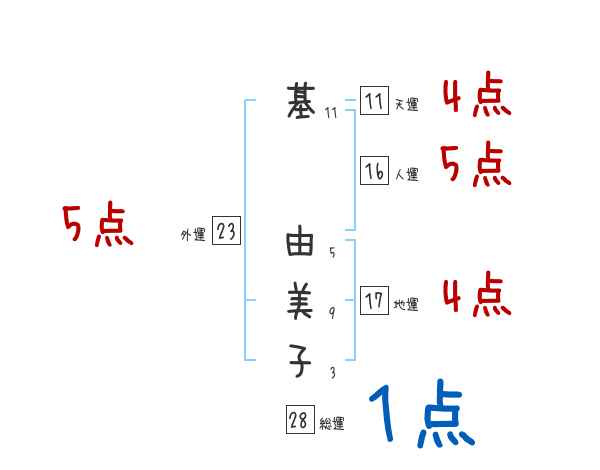 基由美子さんの画数の鑑定結果