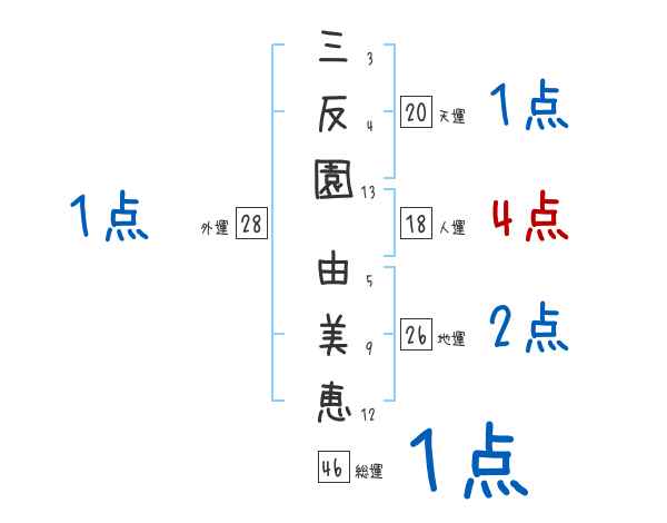 三反園由美恵さんの画数の鑑定結果