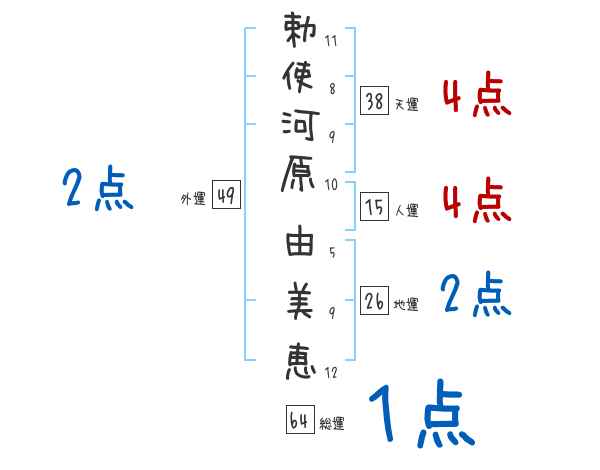 人運![]() | 勅使河原由美恵さんの人運は15画の4つ星!人徳があり出世する。順調に物事を進め円満な人生。 性格や才能などを表す2番目に重要な運勢です。人間関係や協調性、社会的な成功に影響します。主に20歳から50歳ぐらいまでの中年期の運勢を表します。 |