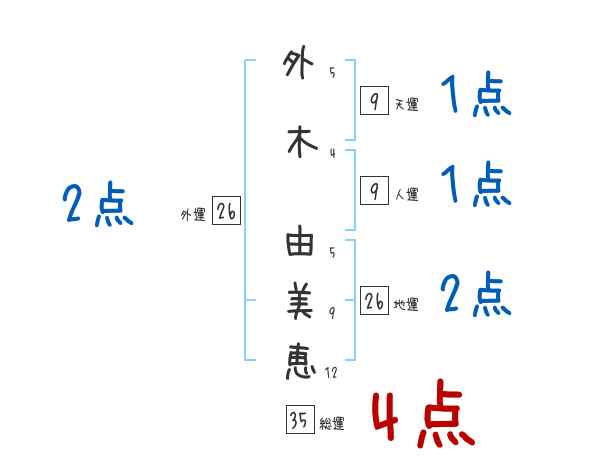 外運![]() | 外木由美恵さんの外運は26画の2つ星!波瀾万丈かも。信頼できる人を大事にしましょう。 生活面を象徴する運勢です。外部から受ける影響力を表し、結婚運、家庭運や職場、環境への順応性を表します。 |