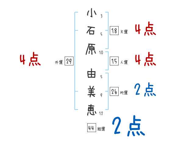 小石原由美恵さんの画数の鑑定結果
