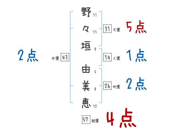 野々垣由美恵さんの画数の鑑定結果