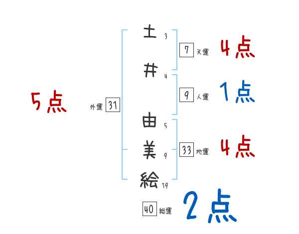 外運![]() | 土井由美絵さんの外運は31画の5つ星!社交性があり判断力に優れる。順風満帆な人生で円満な生活。 生活面を象徴する運勢です。外部から受ける影響力を表し、結婚運、家庭運や職場、環境への順応性を表します。 |