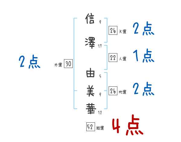 外運![]() | 信澤由美華さんの外運は30画の2つ星!浮き沈みの激しさに注意しましょう。 生活面を象徴する運勢です。外部から受ける影響力を表し、結婚運、家庭運や職場、環境への順応性を表します。 |