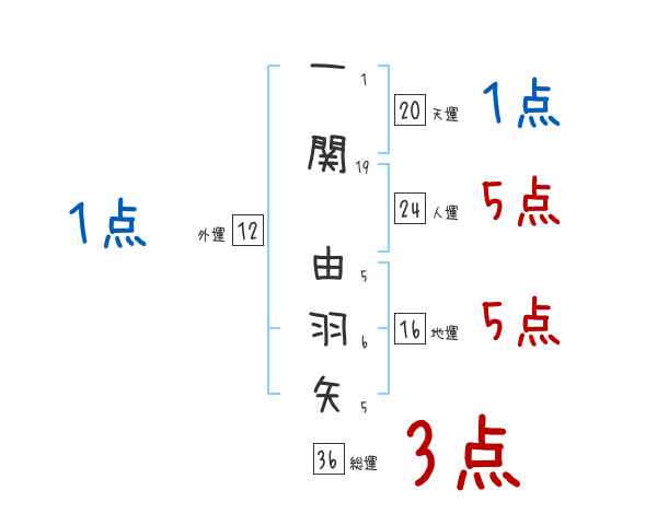 人運![]() | 一関由羽矢さんの人運は24画の5つ星!家庭運が良く順調な人生。金運にも恵まれる。 性格や才能などを表す2番目に重要な運勢です。人間関係や協調性、社会的な成功に影響します。主に20歳から50歳ぐらいまでの中年期の運勢を表します。 |