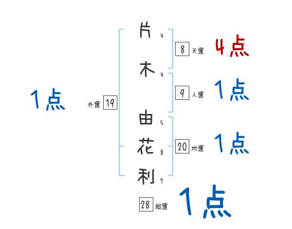 天運![]() | 片木由花利さんの天運は8画の4つ星!勤勉家。根気強く努力し成功する。忍耐力がある。 家系が持つ宿命的な運勢を表します。祖先から受け継いだ苗字ですので自分の力が及びません。家柄を象徴します。 |