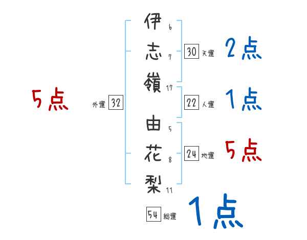 天運![]() | 伊志嶺由花梨さんの天運は30画の2つ星!浮き沈みの激しさに注意しましょう。 家系が持つ宿命的な運勢を表します。祖先から受け継いだ苗字ですので自分の力が及びません。家柄を象徴します。 |