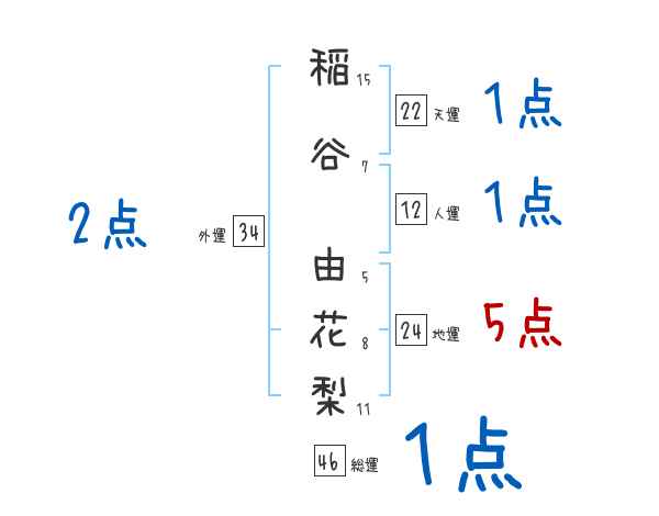 稲谷由花梨さんの画数の鑑定結果