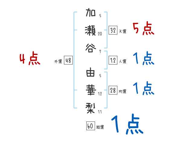 加瀬谷由華梨さんの画数の鑑定結果