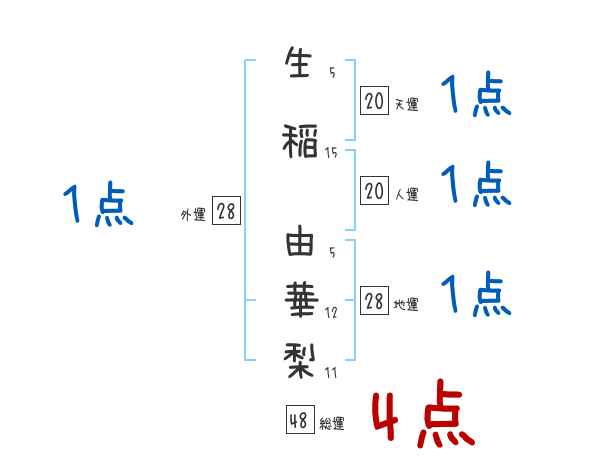 外運![]() | 生稲由華梨さんの外運は28画の1つ星!家庭環境に注意。スポーツで活躍できる能力があるかも。 生活面を象徴する運勢です。外部から受ける影響力を表し、結婚運、家庭運や職場、環境への順応性を表します。 |
