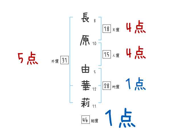 外運![]() | 長原由華莉さんの外運は31画の5つ星!社交性があり判断力に優れる。順風満帆な人生で円満な生活。 生活面を象徴する運勢です。外部から受ける影響力を表し、結婚運、家庭運や職場、環境への順応性を表します。 |