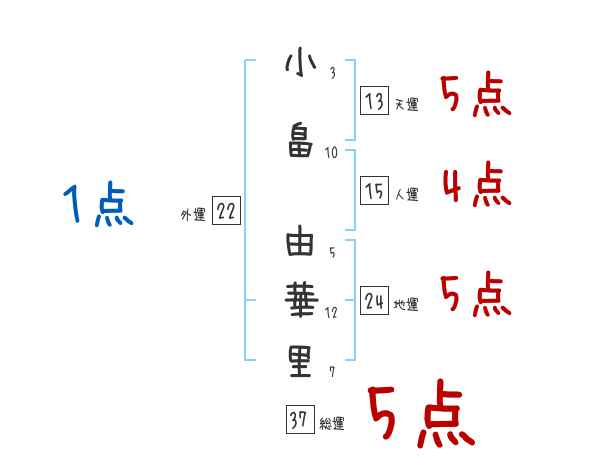 小畠由華里さんの画数の鑑定結果