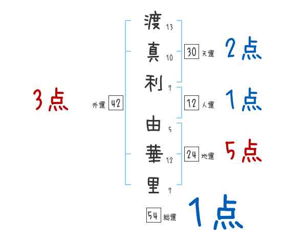 渡真利由華里さんの画数の鑑定結果