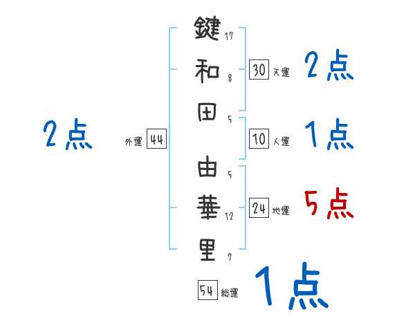 鍵和田由華里さんの画数の鑑定結果