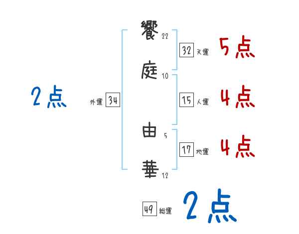 饗庭由華さんの画数の鑑定結果