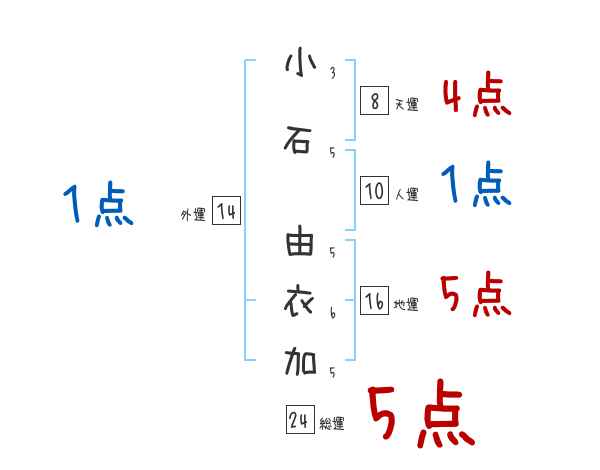 小石由衣加さんの画数の鑑定結果