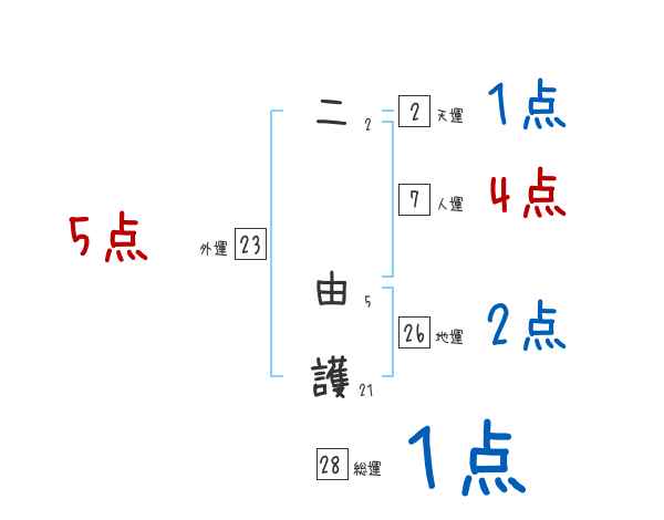 二由護さんの画数の鑑定結果
