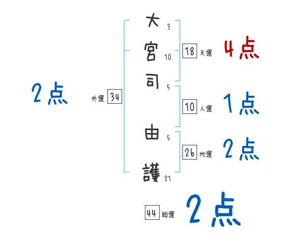 大宮司由護さんの画数の鑑定結果
