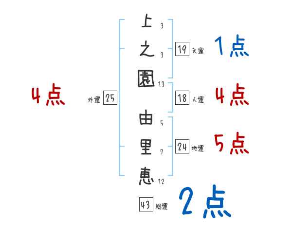 人運![]() | 上之園由里恵さんの人運は18画の4つ星!情熱的で剛気。忍耐力があり信頼される。 性格や才能などを表す2番目に重要な運勢です。人間関係や協調性、社会的な成功に影響します。主に20歳から50歳ぐらいまでの中年期の運勢を表します。 |