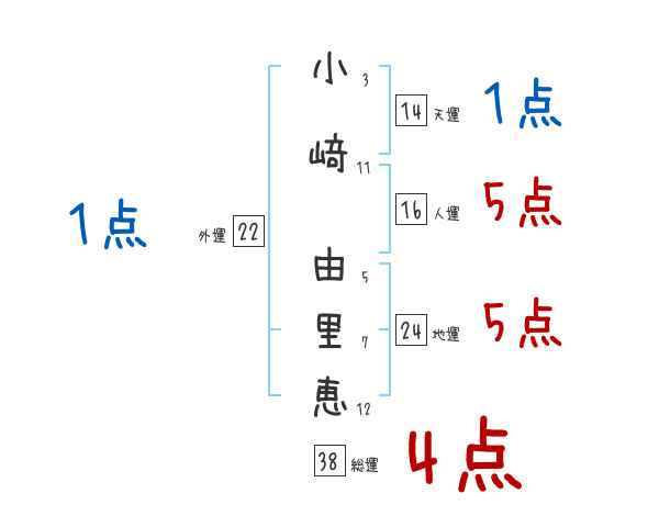 小﨑由里恵さんの画数の鑑定結果