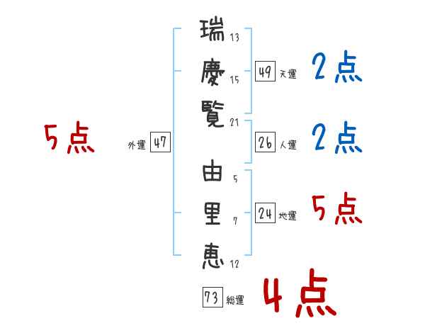 瑞慶覧由里恵さんの外運は47画の5つ星