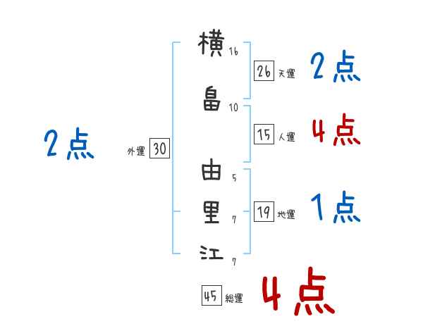外運![]() | 横畠由里江さんの外運は30画の2つ星!浮き沈みの激しさに注意しましょう。 生活面を象徴する運勢です。外部から受ける影響力を表し、結婚運、家庭運や職場、環境への順応性を表します。 |