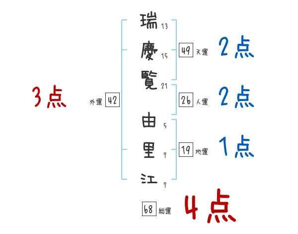 天運![]() | 瑞慶覧由里江さんの天運は49画の2つ星!不安定な性格で明暗がある人生。周りの人には支援されやすい。 家系が持つ宿命的な運勢を表します。祖先から受け継いだ苗字ですので自分の力が及びません。家柄を象徴します。 |