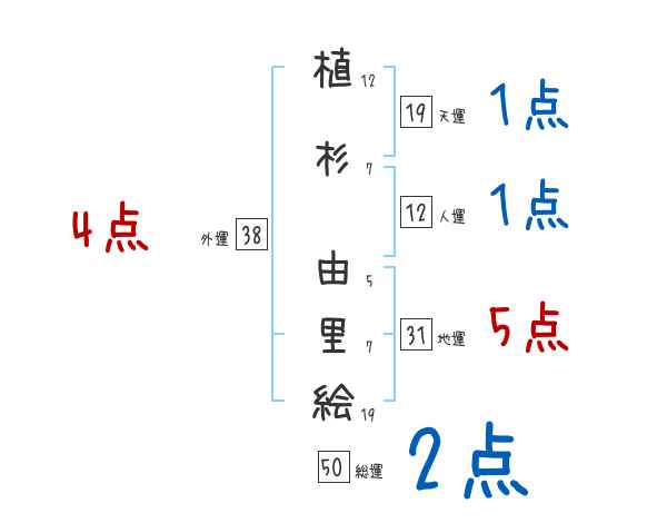 植杉由里絵さんの画数の鑑定結果