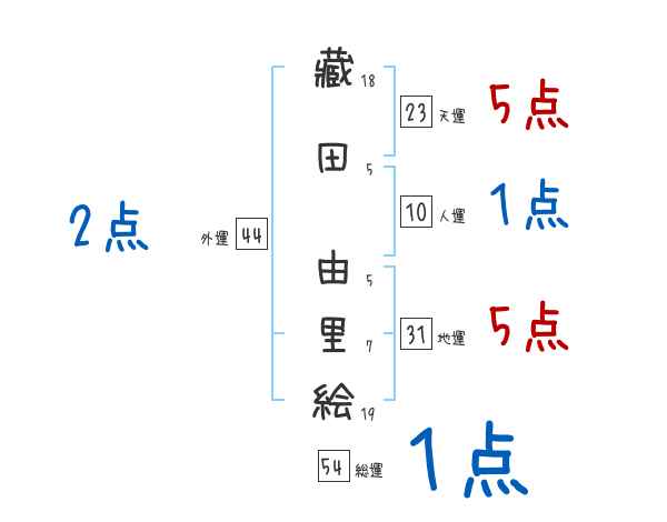 藏田由里絵さんの画数の鑑定結果