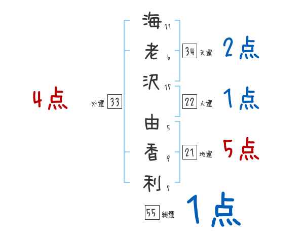 海老沢由香利さんの画数の鑑定結果