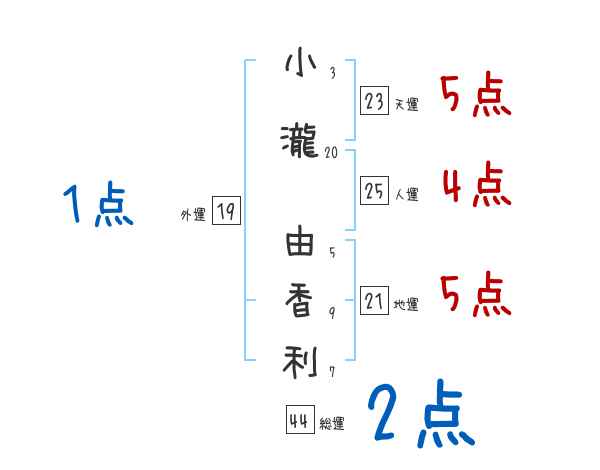 小瀧由香利さんの画数の鑑定結果