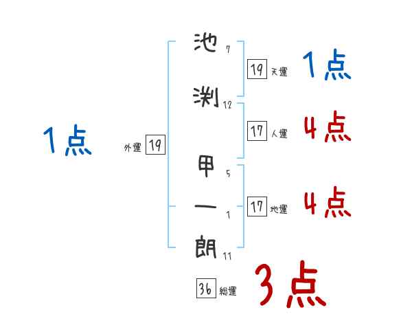 天運![]() | 池渕甲一朗さんの天運は19画の1つ星!優れた才能を持ちますが、協調性が足りないことも。周りの人と協力する事を意識しましょう。 家系が持つ宿命的な運勢を表します。祖先から受け継いだ苗字ですので自分の力が及びません。家柄を象徴します。 |