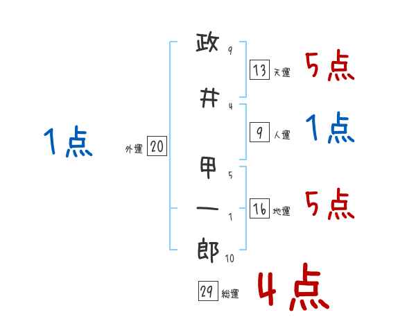 政井甲一郎さんの画数の鑑定結果