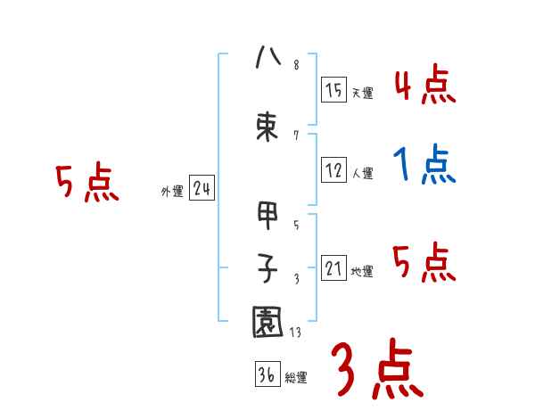 八束甲子園さんの画数の鑑定結果