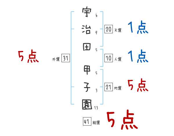 宇治田甲子園さんの画数の鑑定結果