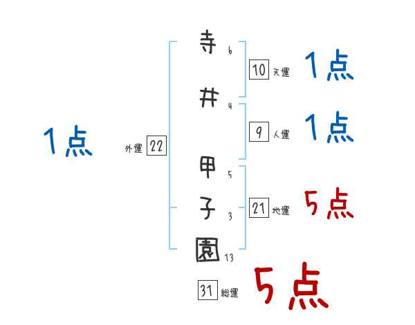 地運![]() | 寺井甲子園さんの地運は21画の5つ星!統率力がある。独立し成功する。名誉を手に入れる。 個性を表す基礎的な運勢です。性格形成や対人関係、行動力など家庭環境に影響されます。主に誕生してから20歳くらいまでの若年期の運勢を表します。 |